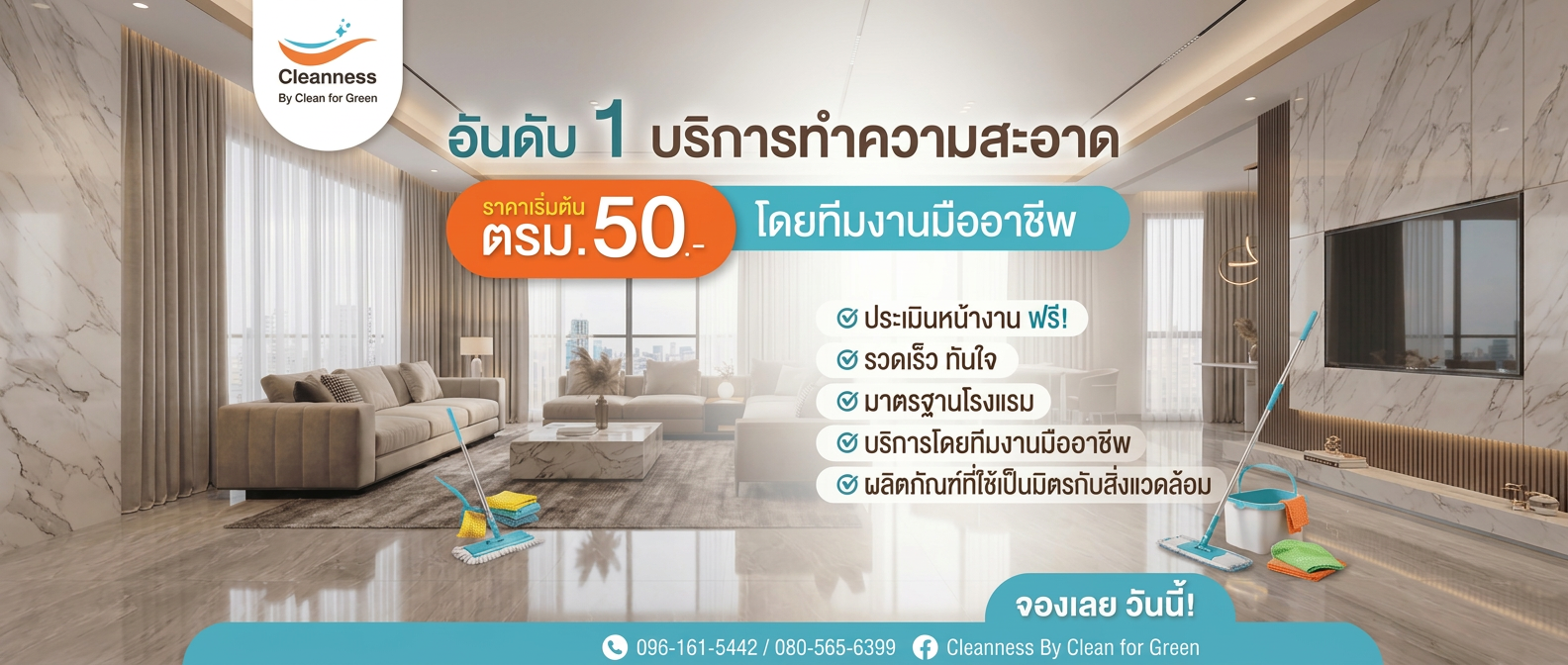 ด้วยบริการทำความสะอาดแบบมืออาชีพ ครอบคลุมทุกพื้นที่ใช้งาน เลือก "Cleanness"